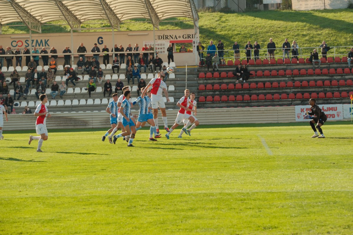 Kroměříž v MSFL dál drží letošní neporazitelnost, potřetí za sebou zvítězila o jediný gól. Hanáci i tak napínavou koncovku zvládli a zaknihovali důležité tři body. Úvod byl ale opatrný, bez vážnějších šancí. První příležitost v zápase měl na kopačce domácí Moučka, ale neuspěl. Znojmo odpovědělo centrem Viegase. Bráněný Vilela se ale k míči nedostal. Skóre otevřel až ve 34. minutě Chwazcz. Domácí forvard se prosadil po rychle rozehrané standardní situaci a po přihrávce Holíka z levé strany, když míč zblízka zatloukl pod břevno. Kroměřížský forvard mohl na konci první půle přidat druhý gól, ale brankář Cruz domácího střelce vychytal. Neuspěl ani Holík. Hanáci se ve druhé půli zaměřili na bránění těsného náskoku, pečlivou defenzivu. Znojmo se snažilo o vyrovnání, více se tlačilo dopředu, ale složitě se prosazovalo. Favorit vyrážel ze zabezpečené defenzivy, hrozil hlavně z brejků. Znojmo zahrozilo jenom střílenými centry, žádnou tutovku nemělo. Domácí měli utkání pod kontrolou. Rozhodnout mohl střídající Bartoš, ale v jasné šanci neuspěl. Vzápětí byl navíc po tvrdém skluzu vyloučen a Kroměříž dohrávala v deseti. Hubený náskok 1:0 nepustila a dál bez prohry vládne třetí lize.