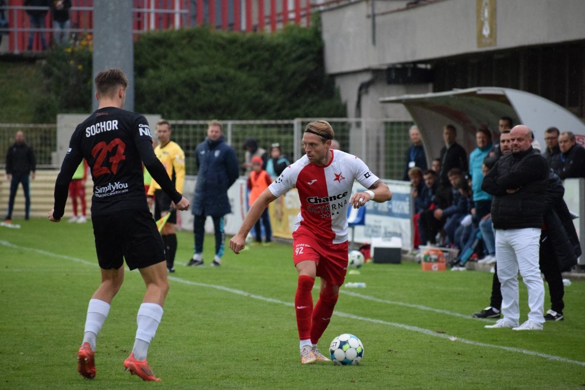 V 52. minutě se ve střední zóně hřiště odehrál souboj mezi Novákem a Araujo-Wilsonem, po kterém první jmenovaný skončil na trávníku. Oba si následně situaci vyříkali slovně i fyzicky a za potyčku oba hráči viděli červenou kartu. Vyloučení více nakoplo domácí, kteří hrozili z krajů hřiště centry do vápna. V 62. minutě se jeden takový ujal, proti míči vyběhl z branky Babka, ale nerozuměl si s vlastním hráčem, který míč odhlavičkoval těsně před ním přímo na kopačku Petra Zavadila, který si byl vědom toho, že je Babka venku z brány a z voleje uklidil míč do sítě.