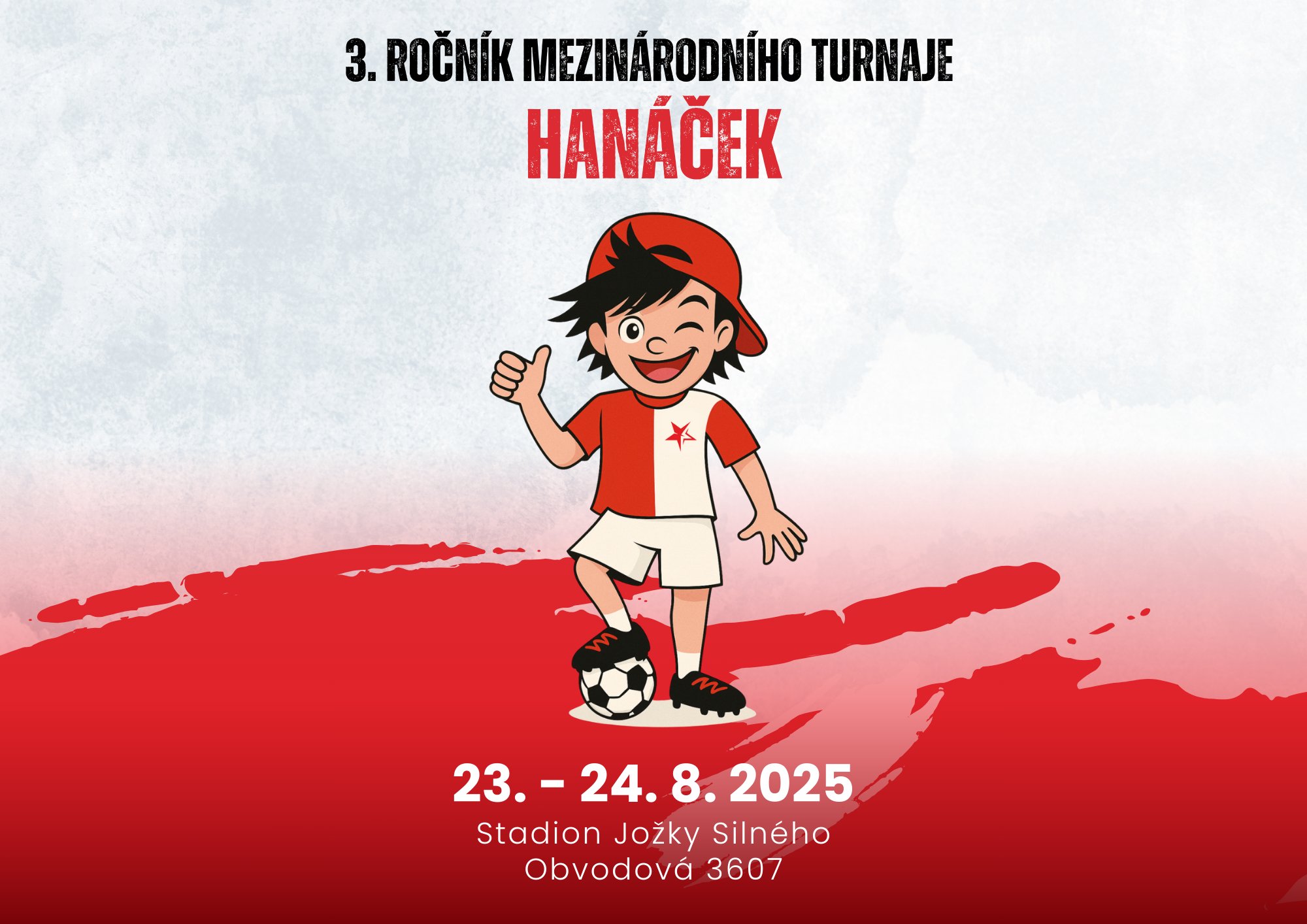 Srdečně vás zveme na 3. ročník mezinárodního fotbalového turnaje HANÁČEK, který se uskuteční už tento víkend – 23. a 24. srpna 2025 na Stadionu Jožky Silného, Obvodová 3607.