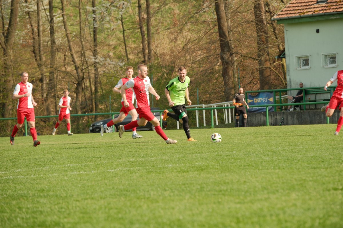 Do utkání Hanáci vstoupili velmi aktivně a po pár minutách se díky dobrému postavení Fuksy dostali do vedení. V dalších příležitostech v úvodu střetnutí se nepodařilo skóre navýšit. Aktivita Hanáků postupně uvadala a domácí Koryčany cítily šanci. Po individuálních chybách hostujících hráčů se domácí dostávali na útočnou polovinu ke standardním situacím, ze kterých byli velmi nebezpeční. I díky pozornému Benediktovi a dobře postavené konstrukcí branky zůstalo skóre do poločasu 0:1 v prospěch hostujících Hanáků.