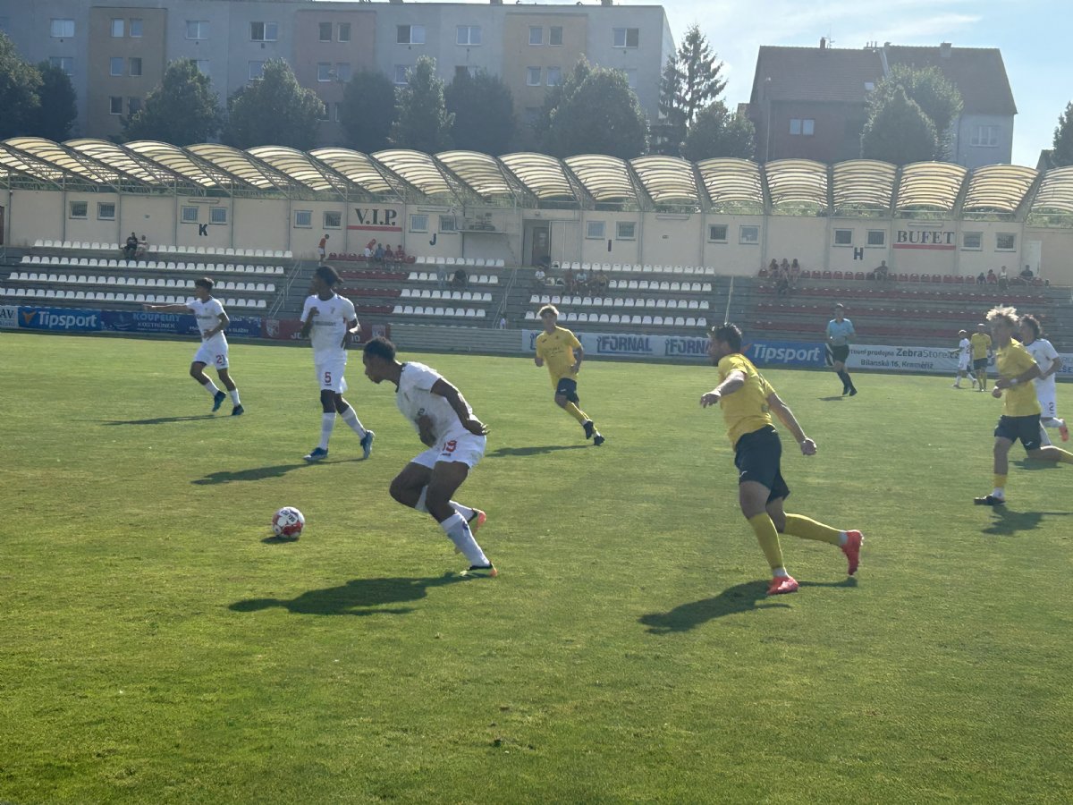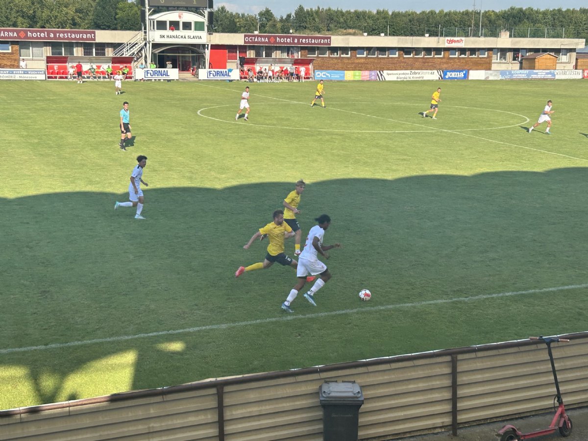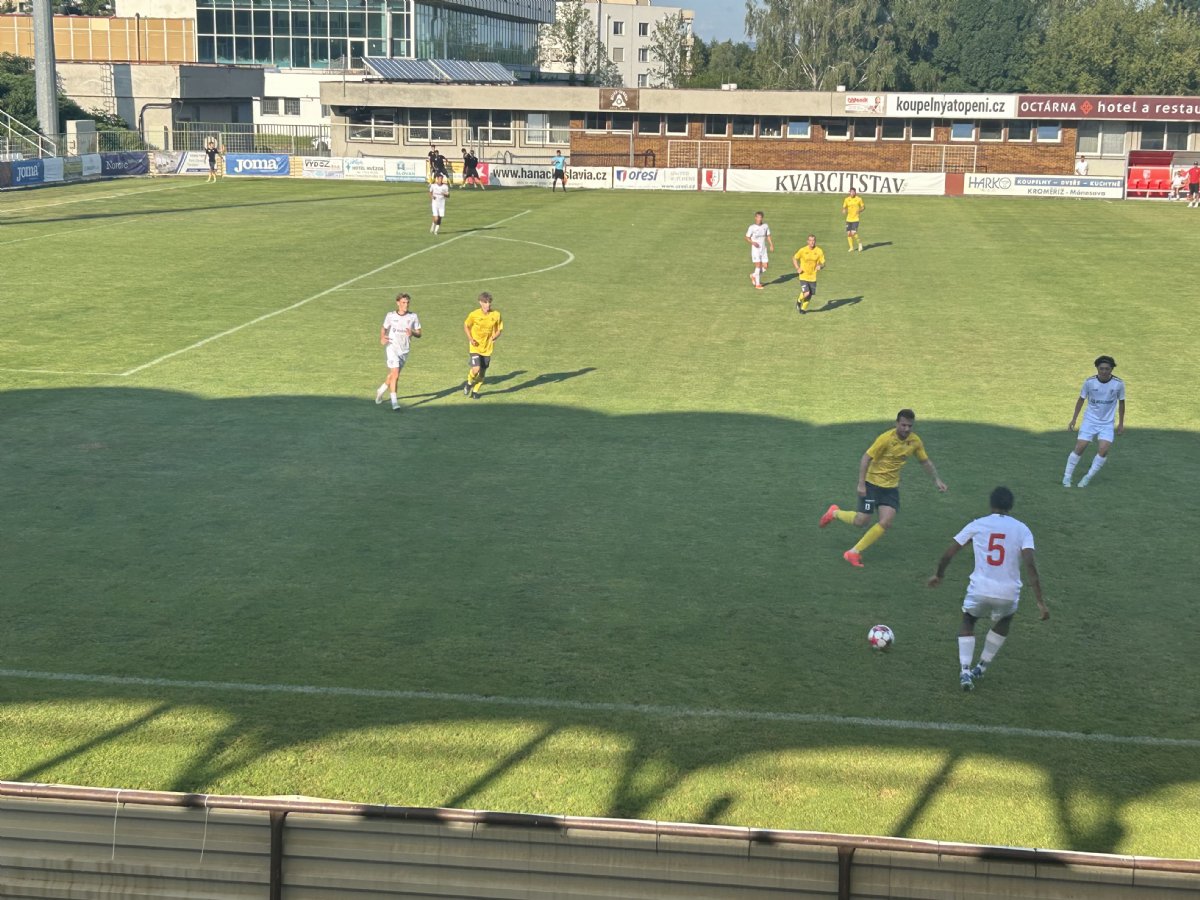 Na hlavním hřišti stadionu Jožky Silného se i přes více než třicetistupňové horko hrálo velmi kvalitní utkání, plné pohybu, nasazení, kombinace a častého zakončení na bránu. Hned v první minutě napálili hosté krásnou střelou zpoza vápna břevno a naznačili svoji kvalitu. Domácí museli dávat míč daleko rychleji a přesněji od nohy než-li tomu bylo v předchozích zápasech. Byla to pro ně velmi cenná zkušenost a konfrontace. Skóre zápasu mohl ve třetí minutě otevřít i domácí Gorip, ale hosté zachránili na brankové čáře. Hosté se díky kvalitní rozehrávce, ale také díky organizovanému presinku dostávali do více nebezpečnějších situací a ve 22.minutě šli do vedení přesnou střelou Snzerkota k tyči. Brankář Slezák se sice snažil míč vyrazit, ale ten nakonec skončil v síti. I přes více nebezpečných situací na obou stranách se šlo do kabin k poločasové přestávce za jednogólového vedení hostů. Z kraje druhé půle mohli domácí vyrovnat, ale šance byla zakončena nepřesnou přihrávkou místo nabízejícího se zakončení střelou. Hosté se dvacet minut před koncem dostali do dvoubrankového vedení a vytvářeli si i další šance, přičemž jednu z nich proměnil v poslední minutě Hurny a stanovil tak konečný výsledek zápasu. Oba týmy zaslouží pochvalu za předvedenou hru.