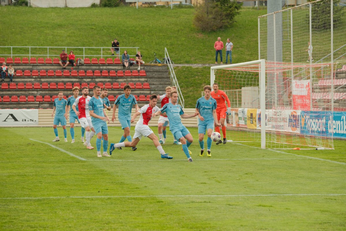 Zápas mohl začít pro Hanáky velmi dobře, když ve 4. minutě odcentroval Fulnek, Chwaszcz přiklepl hlavou před branku na Silného, který z pár metrů dával vedle a pohrdl tak velkou tutovkou. To hosté z první akce udeřili. Na prodloužený rohový kop si naběhl Záviška a poslal míč do sítě. Chrudim pak zahrávala několik dalších rohových kopů a všechny byly velmi nebezpečné. Navíc domácí tyto standardní situace bránili velmi laxně. Druhý gól visel na vlásku a jen se štěstím šly míče těsně mimo. Ve 14 minutě musel ukázat své umění Gergela, když vyrážel velmi nepříjemnou střelu Langhamera. Ve 22.minutě domácí brankář nohou vyrazil prudce nastřelený míč do prostoru malého vápna. Z následného roku pak fantasticky vytáhl přesnou hlavičku. Z následného brejku se řítil na Šeráka osamocený Silný, ale nezvládl kličku a daleko vyběhnuvší Šerák míč odpálil i s nohama domácího útočníka. Na druhé straně v tutovce netrefil dobře míč Mašek. Stejný hráč ve 29. minutě střílel z dobré pozice, ale jen do středu brány, kde si míč pohlídal Gergela. Domácí brankář měl opravdu hodně práce a hned o dvě minuty později musel jemnou tečí vyrážet prudkou ránu z úhlu. Těsně před pauzou mohli domácí vyrovnat, po centru Waly hlavičkoval Hrdlička a Šerák předvedl vynikající zákrok, když míč směřující k tyči vyrazil na roh. .