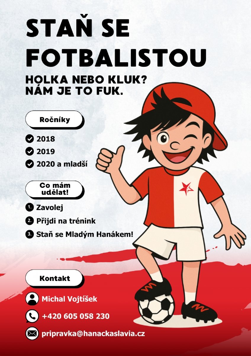 Nábor začínajících fotbalistů ve fotbalovém klubu SK Hanácká Slavia Kroměříž probíhá celoročně. Aktuálně je určen především pro kluky a holky narozené mezi lety 2018, 2019, 2020 a mladším.